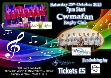 We're a Male Choir regularly rehearsing at Cwmavon Rugby Club every Tuesday evening from 7:30pm - 9:00pm and are always looking for new members so don't be afraid to come along. If you would like any more information do not hesitate to contact us.